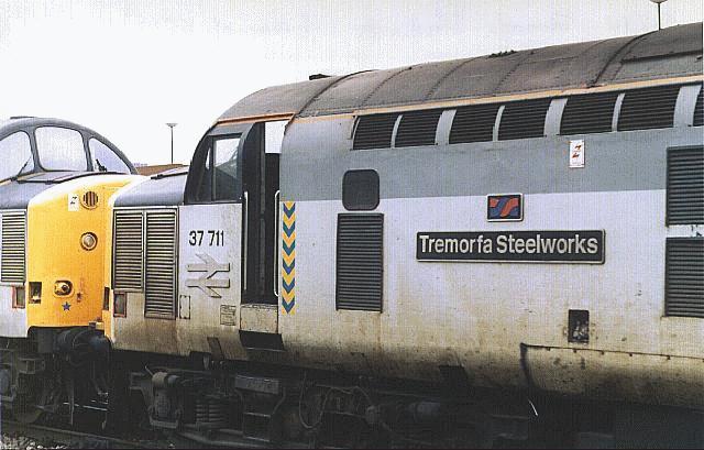 Cabside details of 37-711 Tremorfa Steelworks at Newport on 13 June 1990.