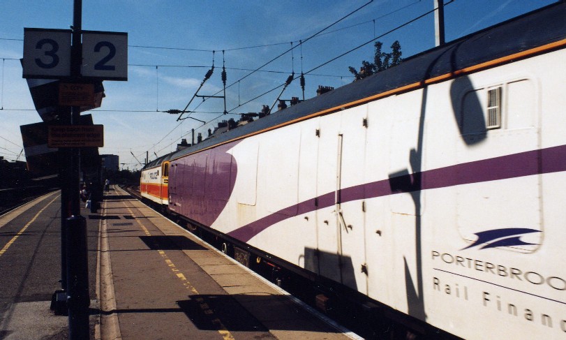 The loco is still in use today but has been 'transfered' to Freightliner and can now be seen 'escorting' car trains amongst other duties. This picture was taken at Coventry in June 2002 on a Virgin Cross Country train to London Paddington.