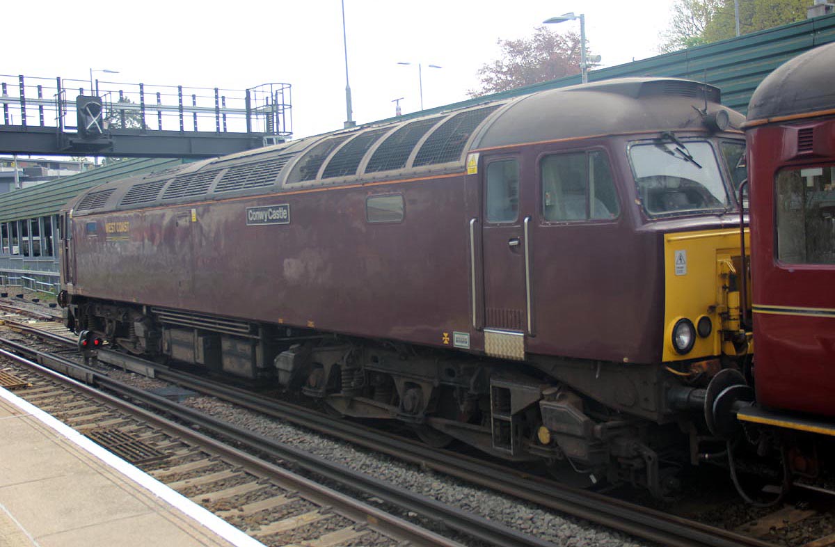 | GB_17_Day_3_57314. Day 3 for the GB17 train was planned for 45212 to go from Cardiff, via the Welsh border line, through Hereford and Shrewsbury, to Chester and from there to Warrington and the West Coast Main Line (WCML), to Carnforth. Plans had to be drastically changed though, when 45212 was found to have run a hot tender axle box and the Welsh border line was blocked by a culvert collapse. So, Brush diesel 57314 took the train from Cardiff, via Gloucester, Birmingham and Wolverhampton, to Crewe and the WCML. 57314 was delivered in August 1965 as D1891, being converted to Class 57 when the original Sulzer diesel engine was replaced by an EMD model, thereby prolonging the locos already long life. The locomotive bears the name of the north Welsh CONWY CASTLE (CONWAY in English). 28th April 2025. roger.griffiths@hotmail.com |