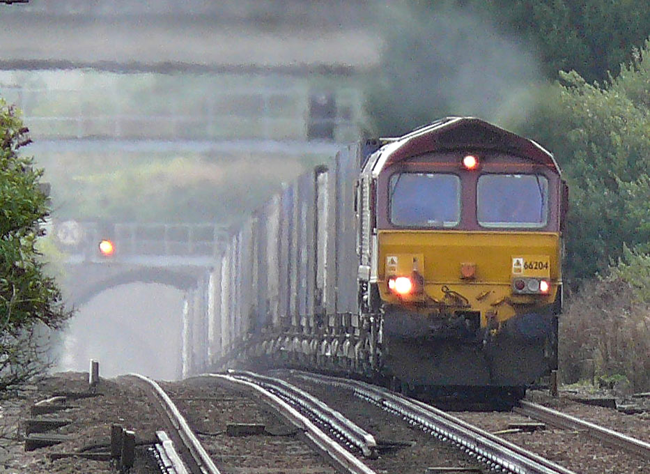 | Wrapped in diesil fumes EWS 66 204 hauls a Channel Tunnel intermodal service towards Westenhanger, Kent. Saturday 6 September, 2008. D h Thomas thomdh@hotmail.com |