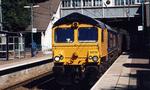 GB Railfreight Class 66/7 Over the first weekend of March 2007, the Nene Valley Railway held their 'Spring Diesel Gala' event which seen GBRf supply a visiting loco in the shape of Metronet Class 66/7 - 66718 'Gwyneth Dunwoody'. With visiting GBRf Class 66/7 - 66718 'Gwyneth Dunwoody' bringing up the rear, preserved Class 56's - 56098 & 56057 'British Fuels' approach Wansford with the 2M45 11:00 Peterborough NV - Wansford service on Sat 3rd Mar 2007 at 11:45.