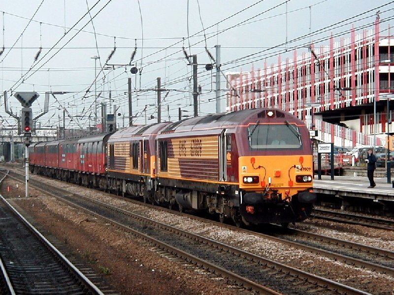 67005 represents todays new style East Coast Main Line thunderbird having just recently replaced class 47s. It is seen at Kings Cross London on Saturday 7th June 2003.