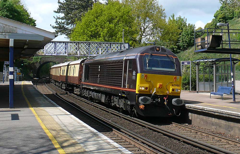 | EWS 67 005 at the head of the VSOE at Sandling, Kent. Sunday 3 May, 2009. D h Thomas thomdh@hotmail.com |