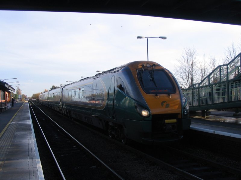 A Hull Train's Pioneer DEMU-4 class 222 is seen heading west of Hessle station (East Riding of Yorkshire area) and is in transit on platform 1. This Hull Train's unit is working on a service from Hull to London King's Cross. Thursday the 25th of September 2008