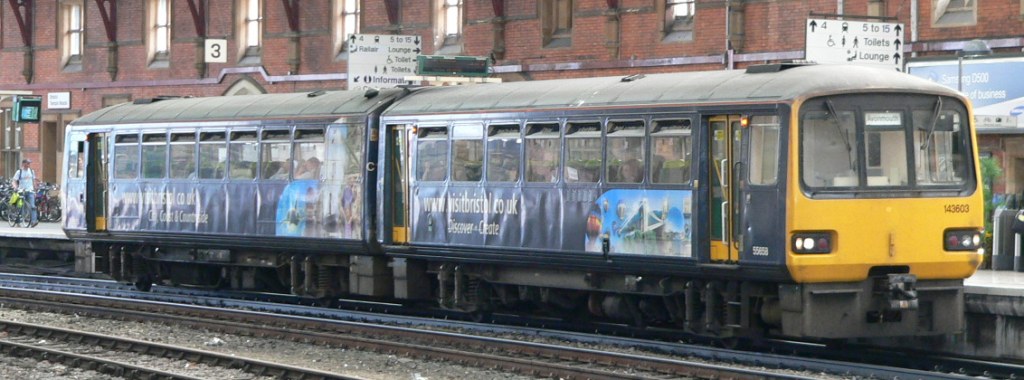 Wessex Trains Clas 143 DMU 143603 at platform 3 of Bristol Temple Meads station with a service to Avonmouth.