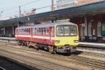 Class 144 Pacer unit seen at Doncaster station leaving Platform Three bound for Sheffield, both the fast and all station services for Sheffield now leave this platform which is bi-directionaly signalled. Additional slow services depart from the bay platform No 5.