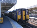 Northern DMU class 150 150147 stands on platform 4 at Doncaster station with the 11.54 to Hull.