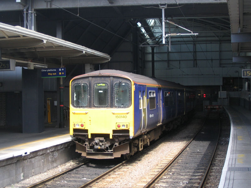 Northern Class 150/1 DMU 150145 at Leeds station.