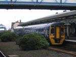 Transpennine express DMU class 158 158763 approaching platform 2 at Meadowhall station on a rainy day service to Clethorpes 29.5.06