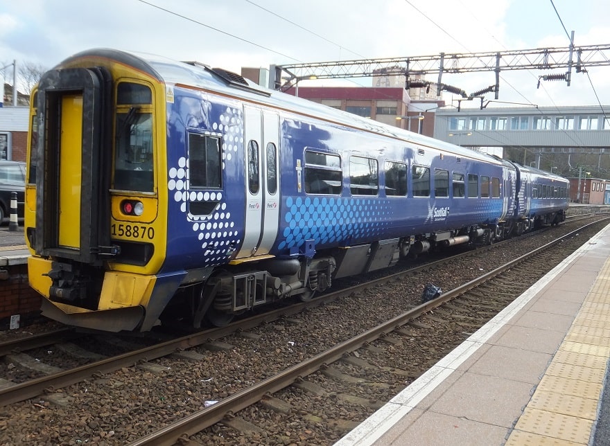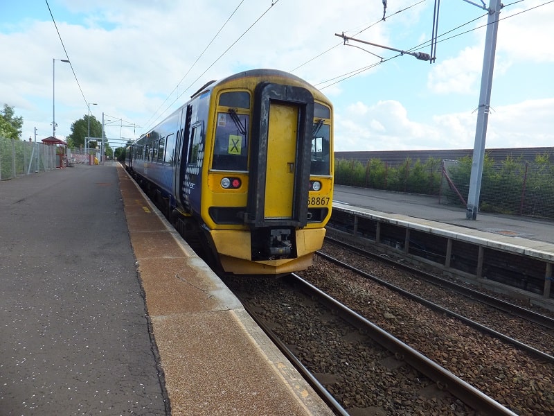 158867 calls at Coatbridge Central station while operating a service from Cumbernauld to Motherwell on Friday, 27th July, 2012.