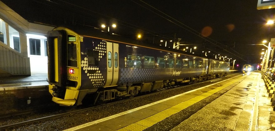 158867 at Motherwell station, waiting to operate the 20:37 service to Cumbernauld on Saturday, 3rd December, 2011.
