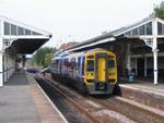 A Northern DMU class 158 158787 is seen standing on platform 1 at Goole station (East Riding of Yorkshire area). This unit works the 14:36 service to Bridlington. Friday the 10th of August 2007