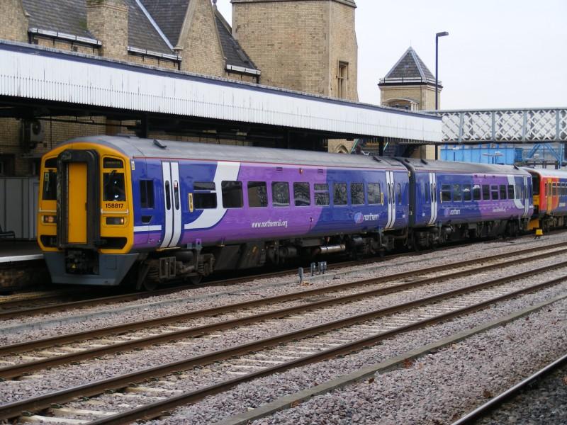 A Northern Rail DMU-2 Express class 158 158817 is seen standing on platform 3A at Lincoln Central station. This unit will begin to work the 14:27 service to Doncaster. Tuesday the 24th of February 2009