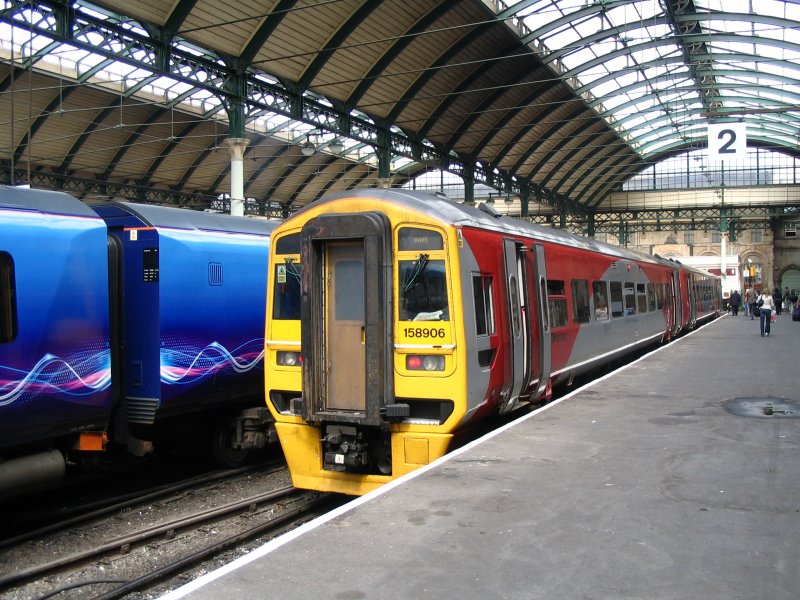Northern Metro DMU class 158 158906 stands at platform 2 in Hull station with a service to York. This picture was taken on the 25th of June 2006. Photo by Matthew Battye E-mail: matthew@rizzardi.karoo.co.uk |