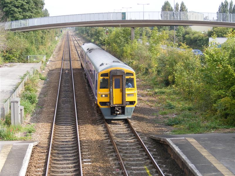 A Northern Rail DMU-2 Express class 158 158907 is seen heading west of Hessle station (East Riding of Yorkshire area) and is in transit on platform 1. This unit is working on a Sheffield via Doncaster service. This photograph was taken from the footbridge. Thursday the 25th of September 2008