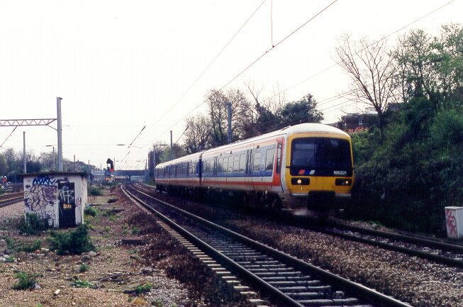 Thames Trains Class 166, 3-car DMU. 166221 is seen at Ealing Broadway with an unidentified Thames Trains service from London Paddington on Thursday 16th April 1998 at 10:29.