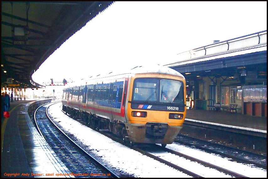 Class 166 seen at Reading Station on December 30th, 2000/. This is the new livery introduced by Thames Trains who operate on this route