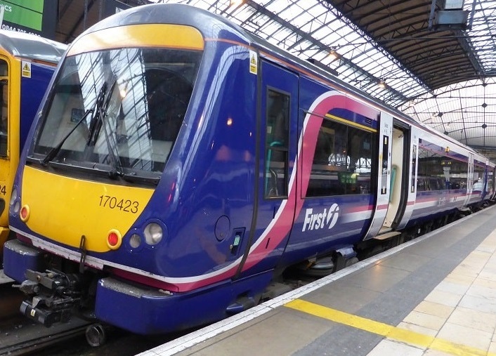 Class 170/4 DMU (170.434) of First Scotrail, seen on a Glasgow Queen Street ---> Aberdeen fast service, while calling at Stirling.