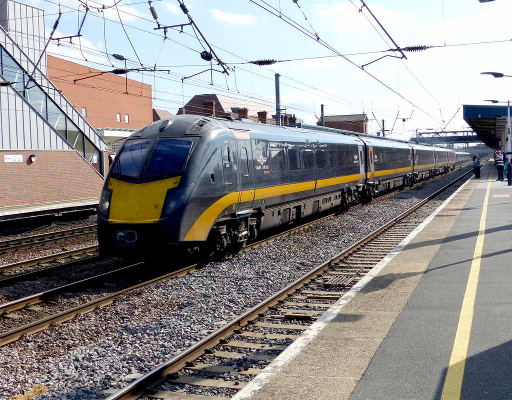 A ten car Class 180 (2 x 5) pulled into Reading station, due to the length of the platform a traditional three quarters shot was not possible, but using full zoom I noticed this shout.