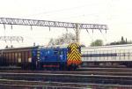 EWS Class 08. Blue liveried 08909 stands at Bescot on Friday 17th April 1998 at 08:00.