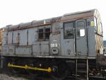 Class 08 shunter 08936 is seen in preservation at the South Yorkshire Railway. It currently retains BR blue livery, and carries evidence of its most recent depot allocation, Norwich.