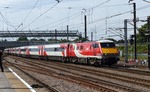 LNER class 91 locomotive and Grand Central class 180 DMU seen at Peterborough on 08/08/21