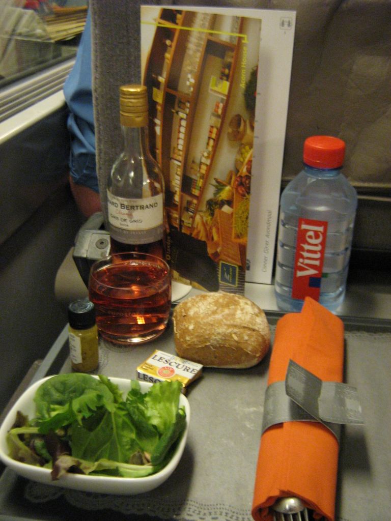 Apart than a better seating area, catering is probably the best reason to opt for First class rather than Standard Class when travelling on Eurostar. Meals are of much better quality than those served on shorthaul flights, even in Business Class.. 13th December 2003. P.L.Guillemin (plguillemin@yahoo.fr) |