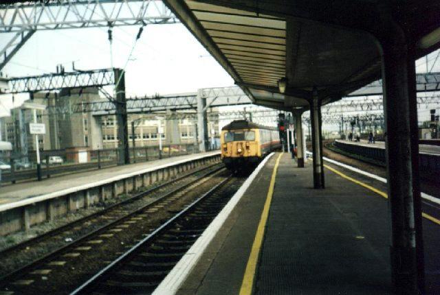 18 April 2001, Waverley Station, Edinburgh, Scotland, UK EMU arriving in Edinburgh Waverley Station.