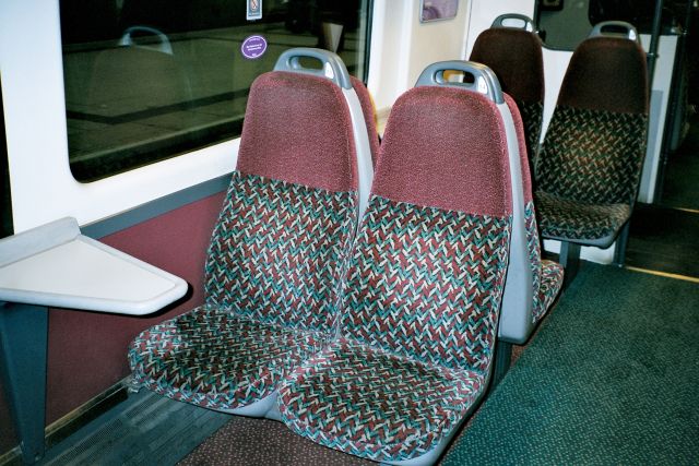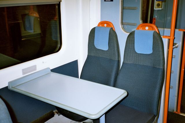 These units run on fast and semi-fast services of WAGN between London and Cambridge/Peterborough. Standard-class atmosphere is very similar to that of 365s of WAGN, which run on the same services (to/from London King's Cross only). Yet, seats are of a different type (Chapman) 10th December 2003. P.L.Guillemin (plguillemin@yahoo.fr) |