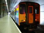 'One' Class 317 EMU 317714 at platform 3 of Stansted Airport railway station shortly after arriving with a southbound Stansted Express service from London Liverpool Street station.