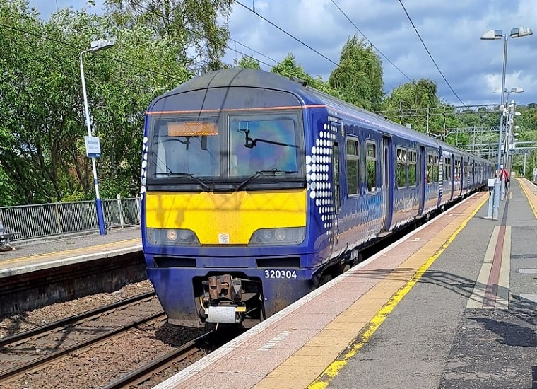 ScotRail - UK Classs 320 are electric commuter trains built from 1990 for the Strathclyde network in Scotland. Trainset 320 302 is seen passing through Westerton, close to Glasgow. Westerton, 04-06-2025 Photo by Marco van Uden |