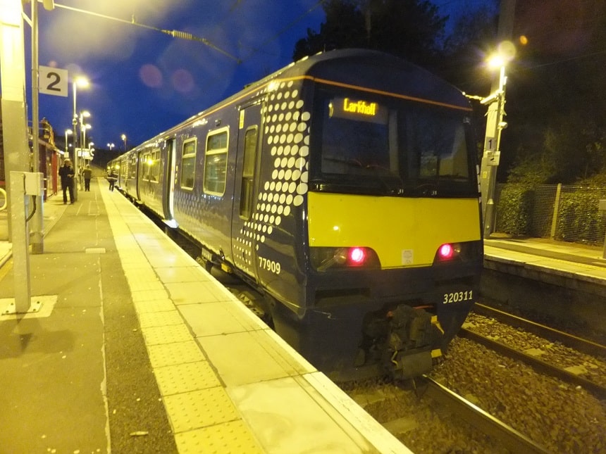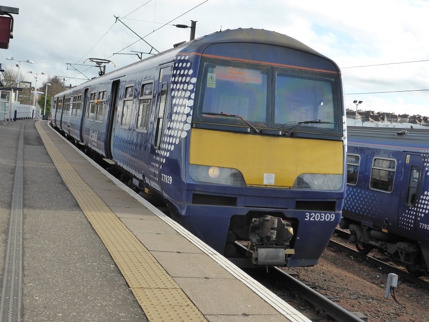 320310 arriving at Paisley Gilmour Street station operating a service from Glasgow Central to Wemyss Bay.