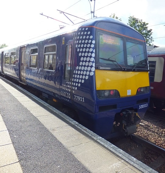ScotRail - UK Electric trainset 320 313 in the very attractive ScotRail livery, is seen at Glasgow Central station (upper level). Glasgow, 03-07-2016 Digital photo by Marco van Uden |