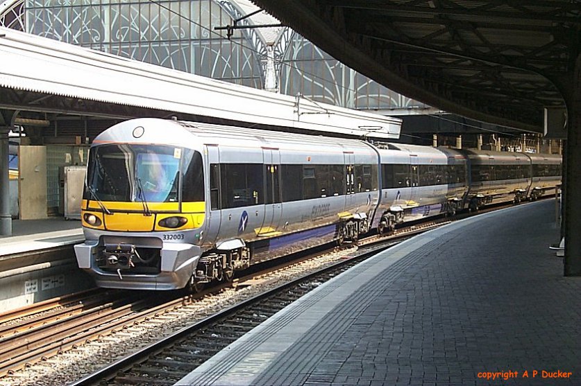 Class 332 HEx unit seen at London Paddington. This unti work the 15 minute interval service Heathrow Airport. A new livery has been applied to the first class coach.