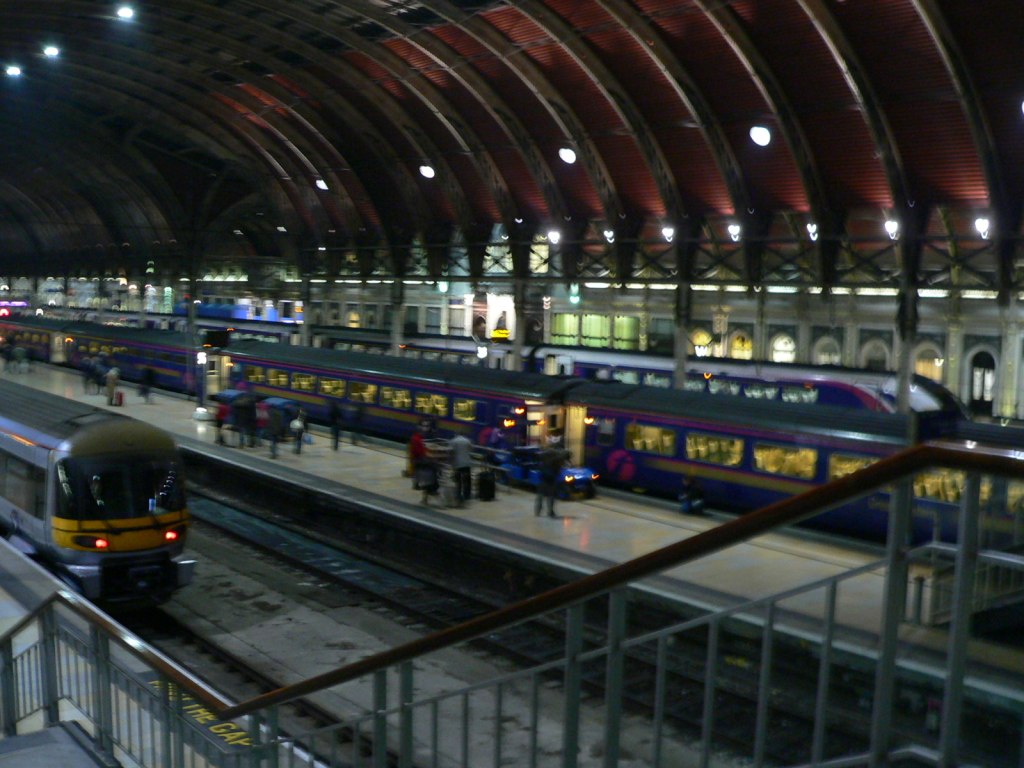 A Heathrow Express service heads outbound from London Paddington. This photograph was taken from the old motorail platform.