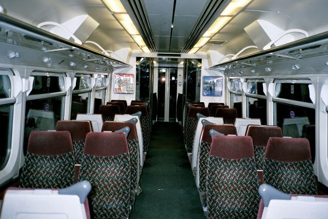 These units run on fast and semi-fast services between London King's Cross and Peterborough/Cambridge. Interiors are identical to those of the 365s used by (ex-Connex) South Eastern Trains between London and Dover via Chatham. Seats are similar to those of Networkers 465s and 466s, as well as those of Network Turbos 165s and 166s. Yet, they are arranged in 2+2 rather than in 2+3, with softer covers. 1st December 2003. P.L.Guillemin (plguillemin@yahoo.fr) |