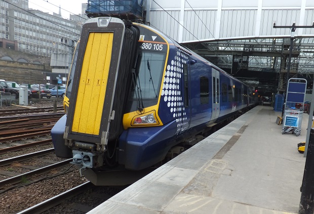 380103 is waiting to operate the 12:30 service to Ayr. Photo by Andrew Reid. |