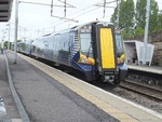 380107 departing Wishaw station, operating the 17:42 service from Edinburgh to Glasgow Central on Monday, 2nd July, 2012.