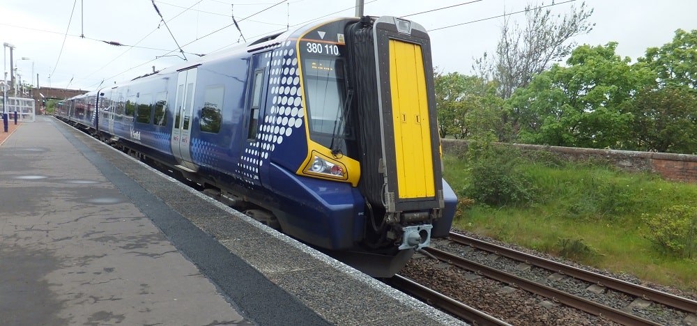 380107 arriving at Motherwell station, operating the 17:42 service from Edinburgh to Glasgow Central (via Carstairs) on Tuesday, 17th September, 2013.