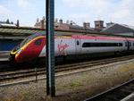 The sign of things to come as a class 390 Pendolino races through Nuneaton on its journey to London.