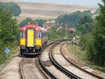 South West Trains Class 442 EMU 442416 aproaches Upwey station in Dorset, the penultimate stop on its London Waterloo to Weymouth service.