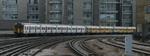 Two South West Trains Class 455 EMUs head south from Vauxhall station with a Strawberry Hill service. 444868 in a livery celebrating the Queen's 2002 Golden Jubilee leads 455869 in a livery advertising the Royal British Legion's Poppy Appeal.