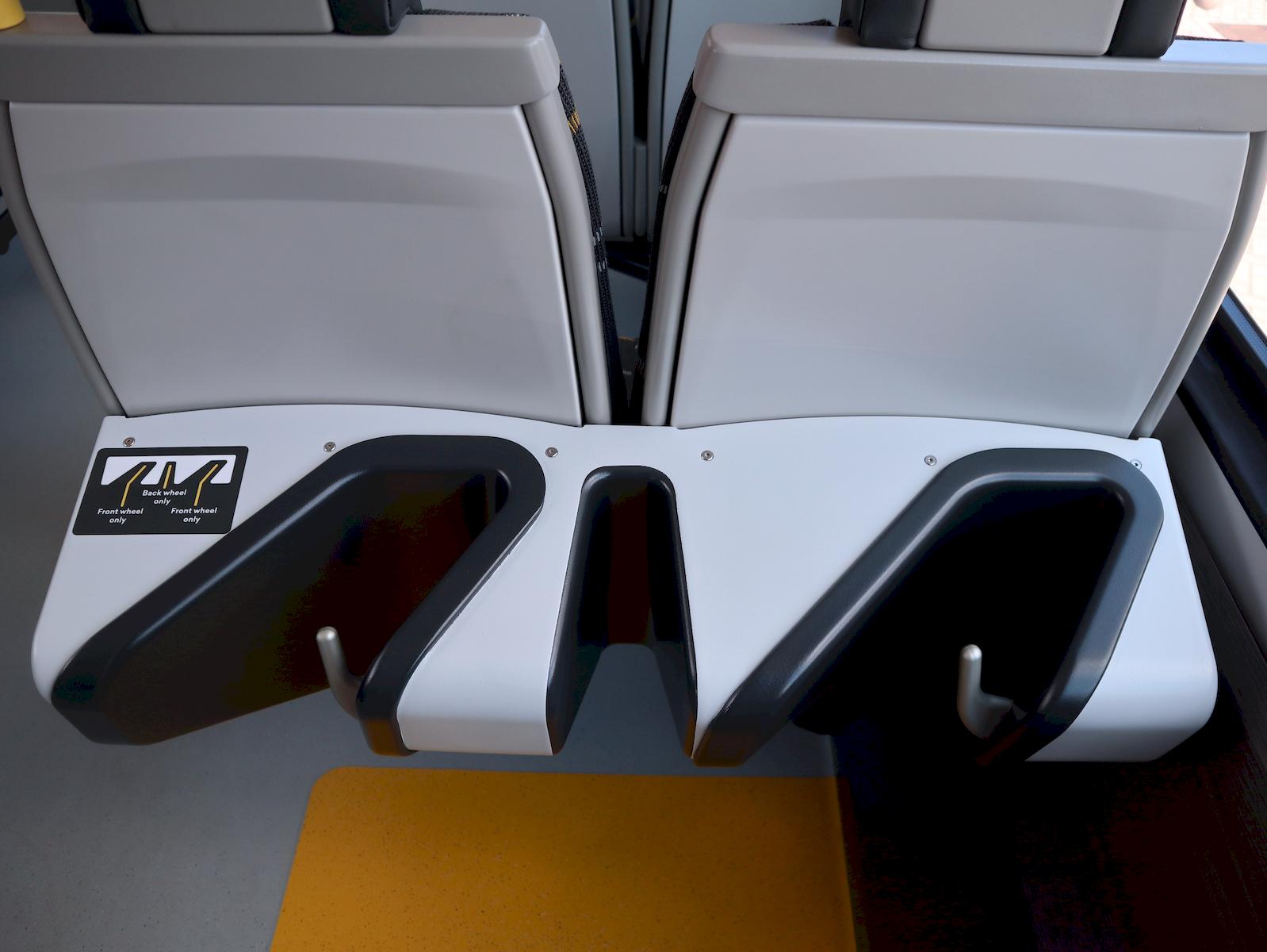 | Merseytravel 777 140 by Stadler shown at InnoTrans 2022, Berlin, 2022-09-20. Bicycle stand. |