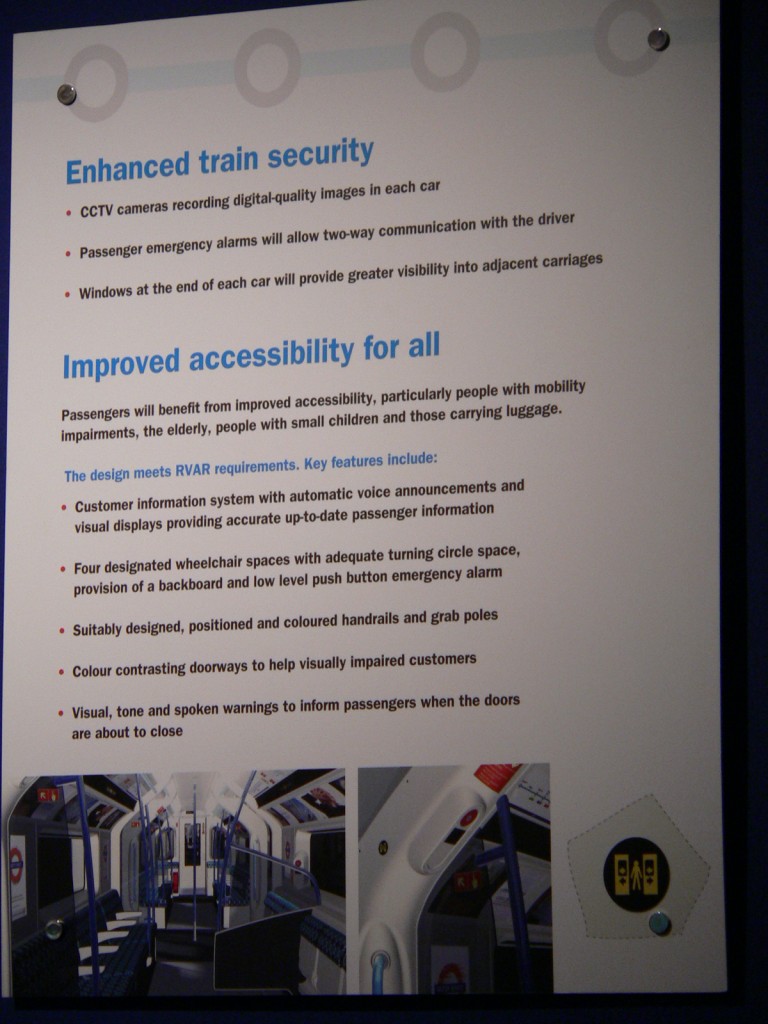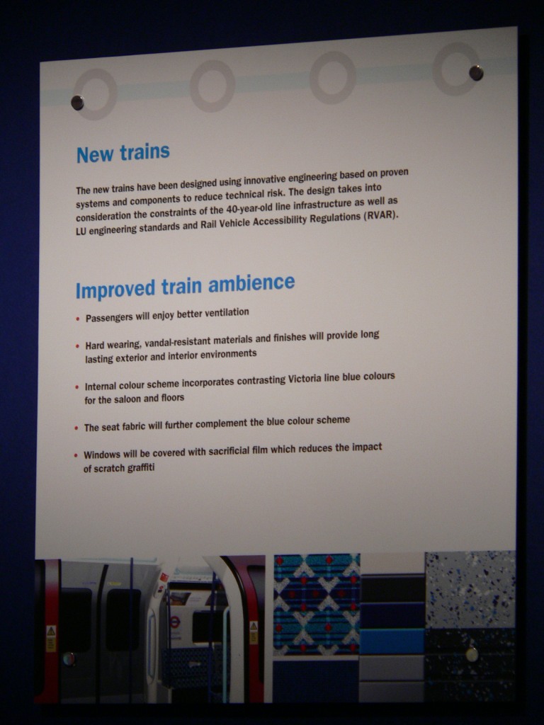 The mockup of the London Underground 2009 stock, which will replace the existing 1967 stock on the Victoria Line, was open to public viewing in a marquee in Euston Square Gardens for a couple of weeks in early August. One of the posters in the marquee explaining the upgrade to the Victoria Line.