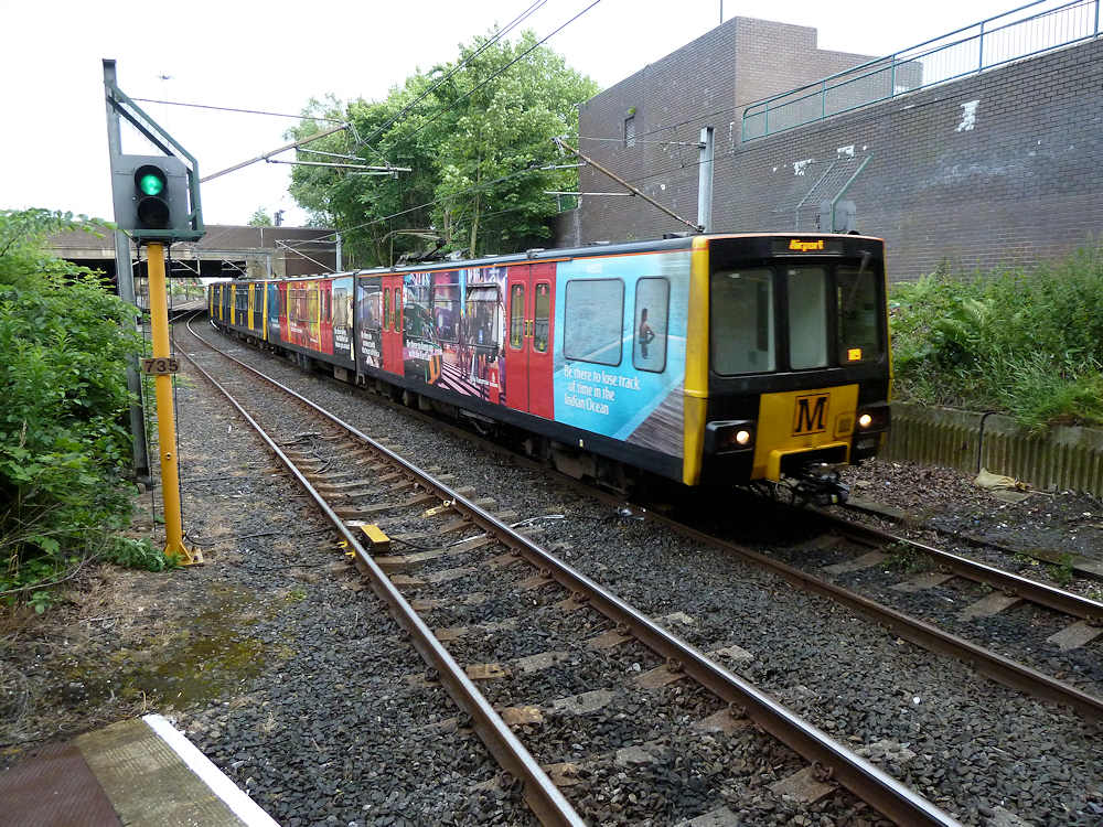Tyne&Wear Metro - UK Trainset 4082 in advertising livery (even covering the windows) departs from Hebburn on its way to Newcastle Airport. Hebburn, 02-07-2016 Digital photo by Marco van Uden |