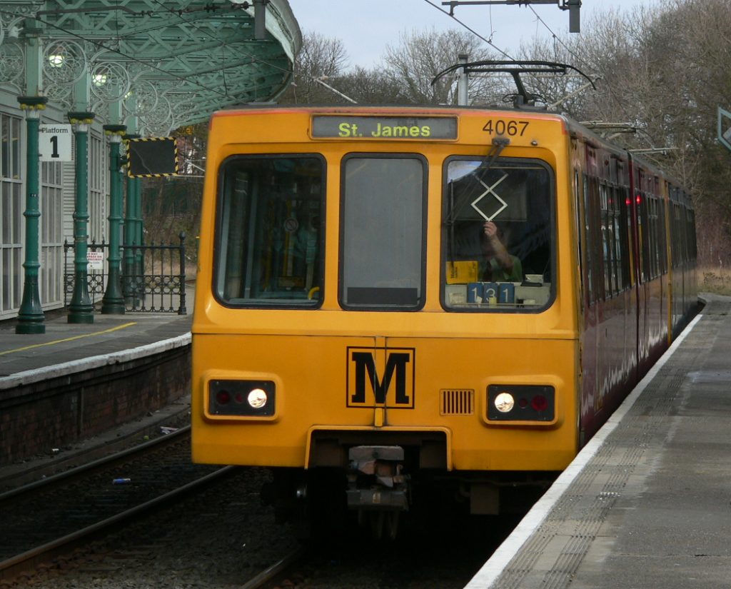 A Tyne and Wear metro train (number 4067) for St James arrives at platform 2 of Tynemouth Station 07/03/2005.