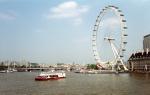So what has the British Airways London Eye got to do with railways? Well not only does it provide spectacular views of London but the bonus, if you are interested in photographing railways, is that it happens to overlook two of London's Mainline stations. To the left of the Eye is Hungerford Bridge which carries Connex S & S.E services into Charing Cross. One can just be seen in the picture. Then directly behind the Eye lies Waterloo Station which in addition to handling trains from the S.& S.W. mainly by South West Trains, has alongside it Waterloo International which is for Eurostar services to the Continent. All pictures were taken on Friday May 30th 2003 in good clear conditions at around 3.00pm. 'Jampics' collectively bucked-up courage and climbed on board for the 30 minute 'flight' that takes you up to 135 metres above London..........