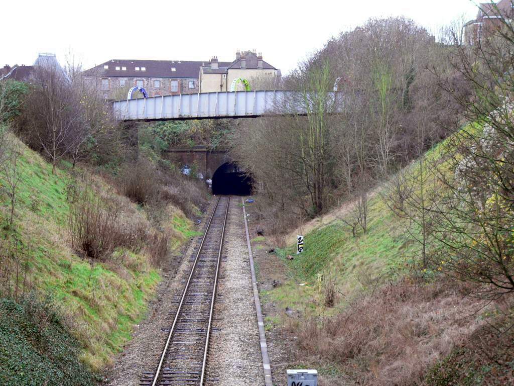 Looking west along the Severn Beach Line towards the tunnel to Montpellier station. This photograph was taken from Ashley Hill bridge, on the boundary between the St Andrews and Montpellier areas of Bristol to the north (right) and south of the railway.