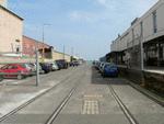 Looking east along Custom House Quay from point 48 on the map. The raised platform on the right is the former goods loading area and one of only two stretches of double tracking on the entire branch; although the rails closest to the platform have been tarmaced over. There is no evidence left of any switching mechanism, and there never has been any signals - perhaps the 4mph was felt to negate the need for the latter?