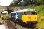 Preserved Class 50. Having arrived at Birkhill, on the Bo'Ness & Kinneil Railway with the 10:40 Bo'Ness - Birkhill service during the diesel gala weekend on Sun 6th Sept 1998, 50021 'Rodney' runs round it's train in order to work it back as the 11:03 Birkhill - Bo'Ness service.